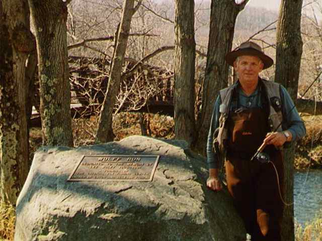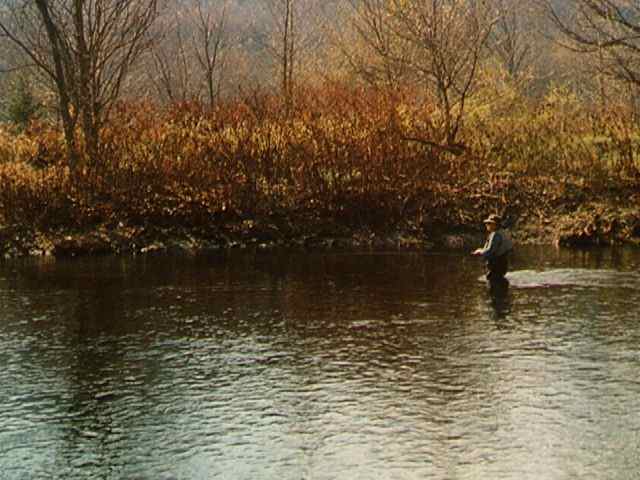 Fall 1996 in the Catskills. Dave Churches, darned near worn out from his and Judy's whirlwind tour of the U.S., makes one last fishing stop before heading back Down Under. I met him at the Catskills Fly Fishing Museum near Roscoe NY on a beautiful Autumn day and we had a good couple of hours not catching fish. Well, OK, he caught one but it was too small to photograph... 8^)