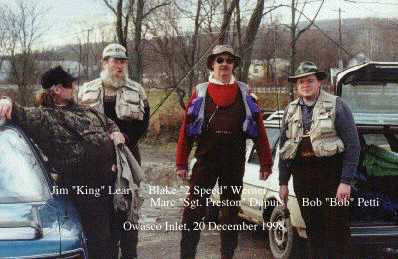 20 December 1998. We converged on Owasco Inlet. Marc Dupuis came down from Ottawa for this one, proving to be the hardiest of the winter-fishing lot. His reward, of course, was an anemic gravy at the Moravia diner.....