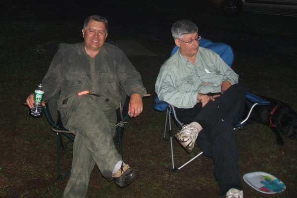 Paul Schlote and Dan Mulvihill keep watch over a sleepy River